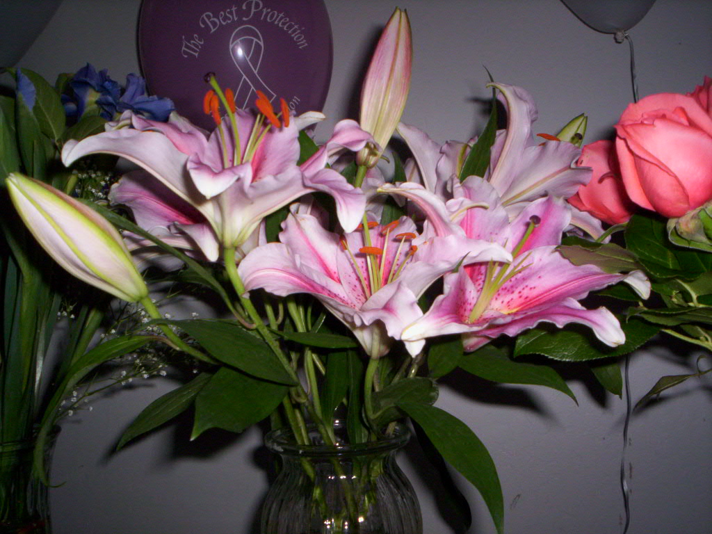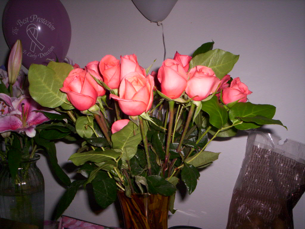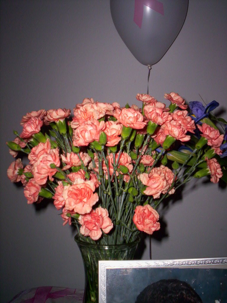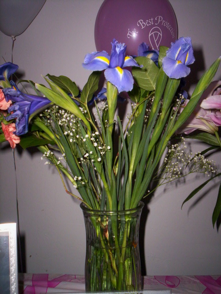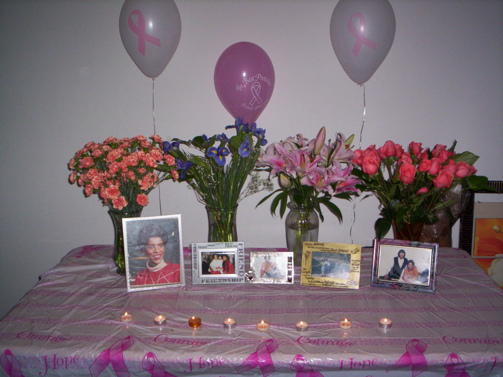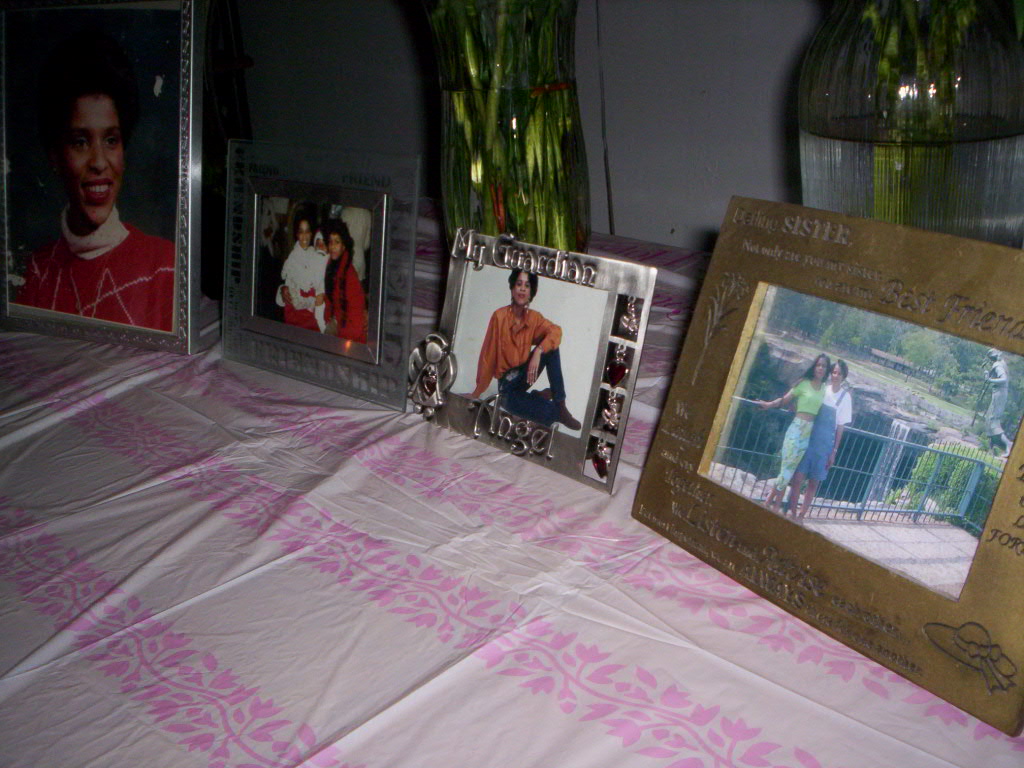 We set up a table with flowers, pictures, and candles.